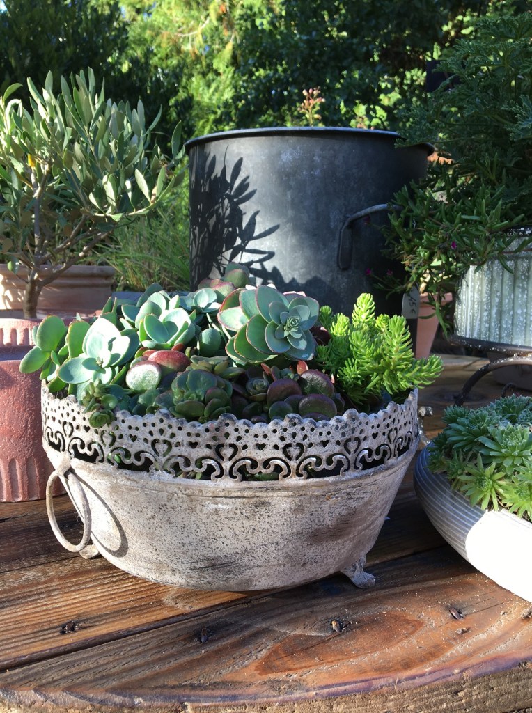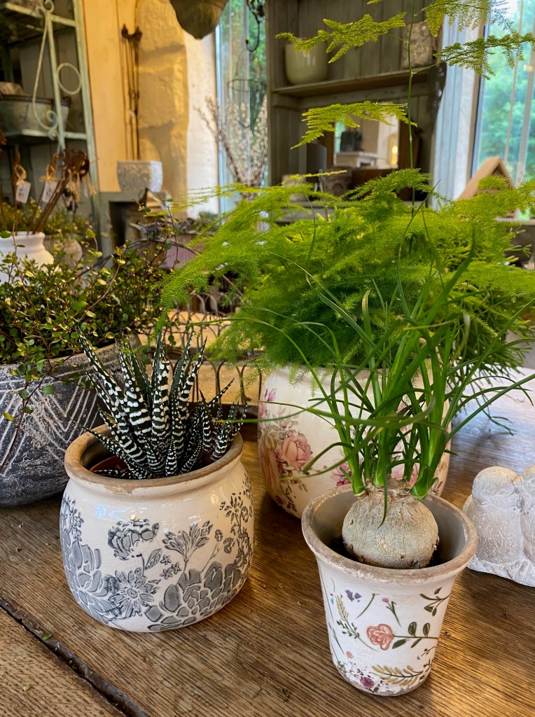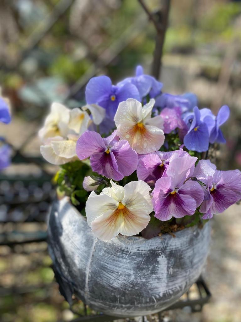Suivant les saisons, vous trouverez aux Glycines une belle sélection de contenants variés (zinc, osier, terre cuite, fonte), de délicates compositions florales à offrir et de magnifiques arbustes.